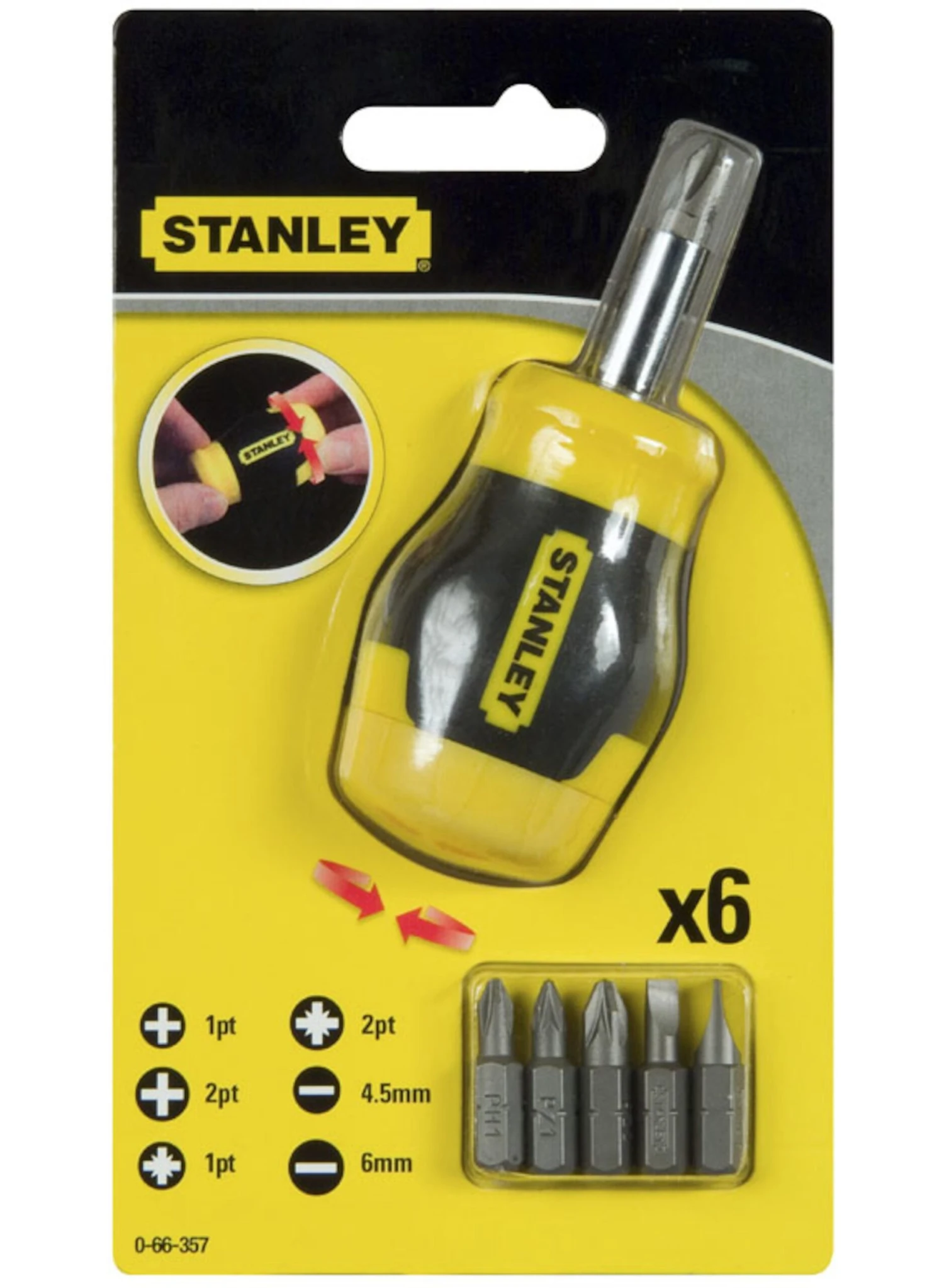 Eigenschappen van STANLEY MULTIBIT STUBBY SCHROEVENDRAAIER